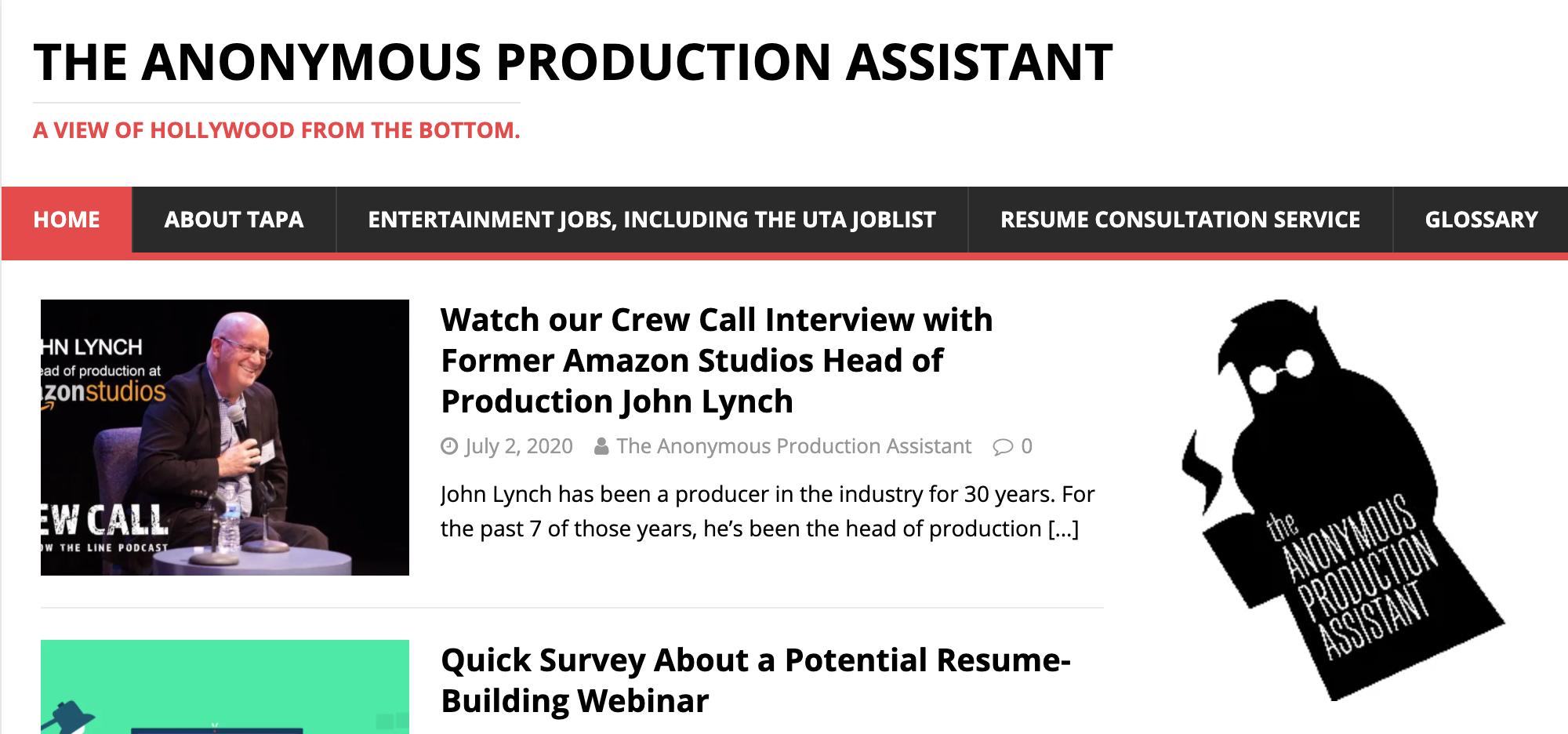 For the inside scoop from a Hollywood PA, check out The Anonymous Production Assistant. Here you can ask questions, share stories, and even get your resumes checked out for those in the early stages of your career. The blog acts as a repository for all of the knowledge this unknown PA has accumulated over the years, in the hopes of instructing future generations of producers to have a leg up.